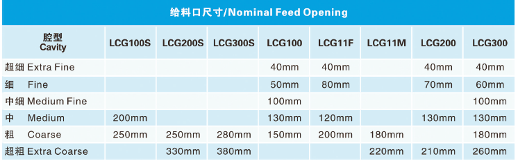 LUCKCOME LCG Series cone crushers can be easily adjusted for different production requirements. With a wide selection of cavities, the same crusher can be used in 2nd,3rd or 4th crushing stages, producing different end product sizes. The stroke change feature allows crusher through-